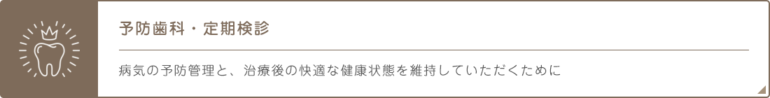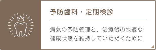 歯は治してからが大切です。むし歯や歯周病の予防と、歯の健康維持を大切にしています。